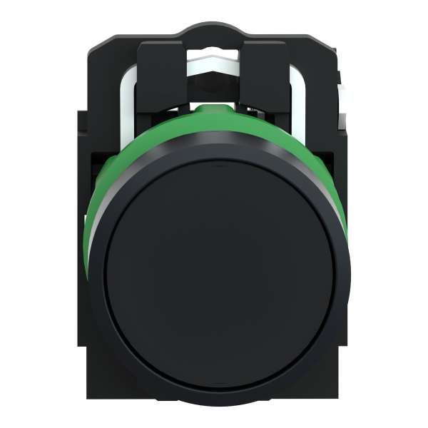 Push button, plastic, flush, black, Ø22, spring return, unmarked, 1 NO