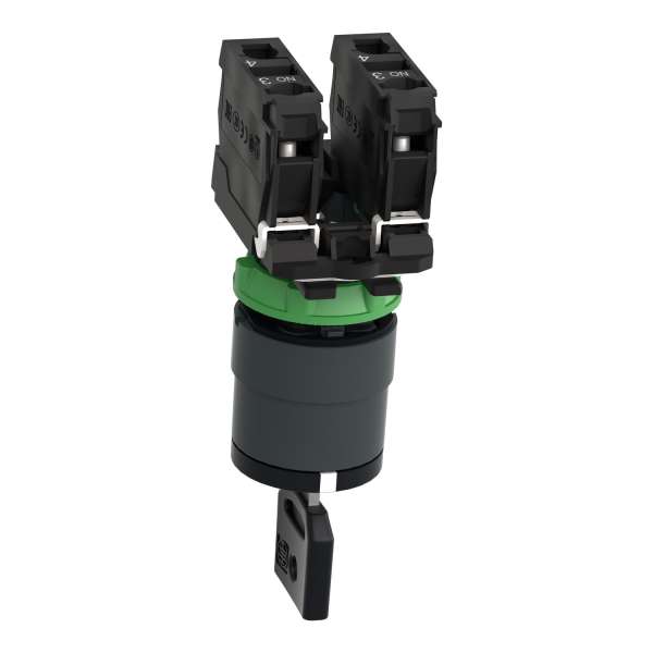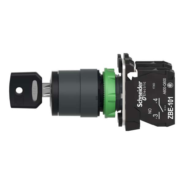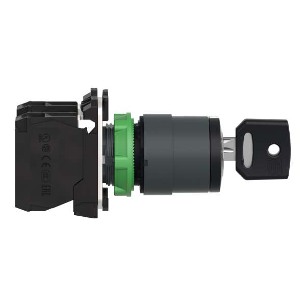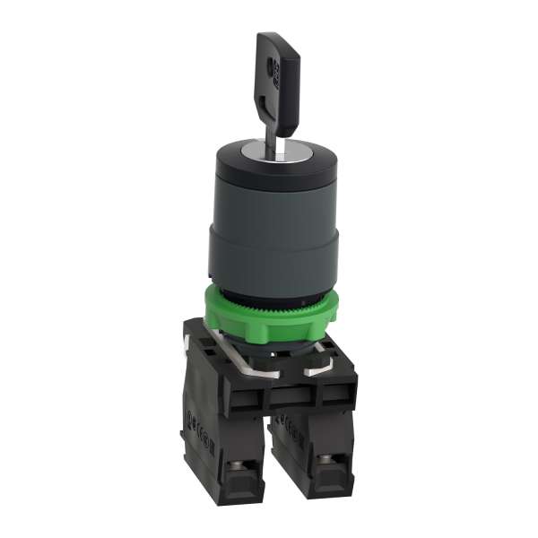 Harmony XB5, Key switch selector, plastic, black, Ø22, key n°455, 3 positions, stay put, 2 NO