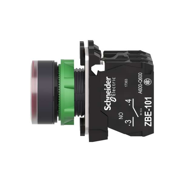 Illuminated push button, plastic, flush, red, Ø22, spring return, 24 V AC/DC, 1 NO + 1 NC
